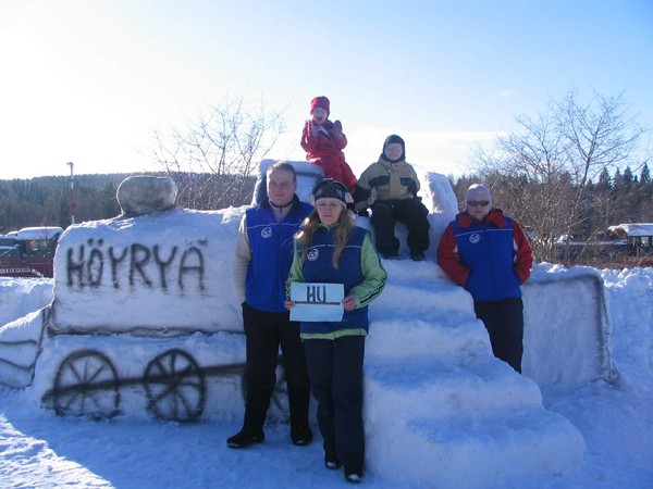 perinteinen lumiveistoskisa veturipuistossa...